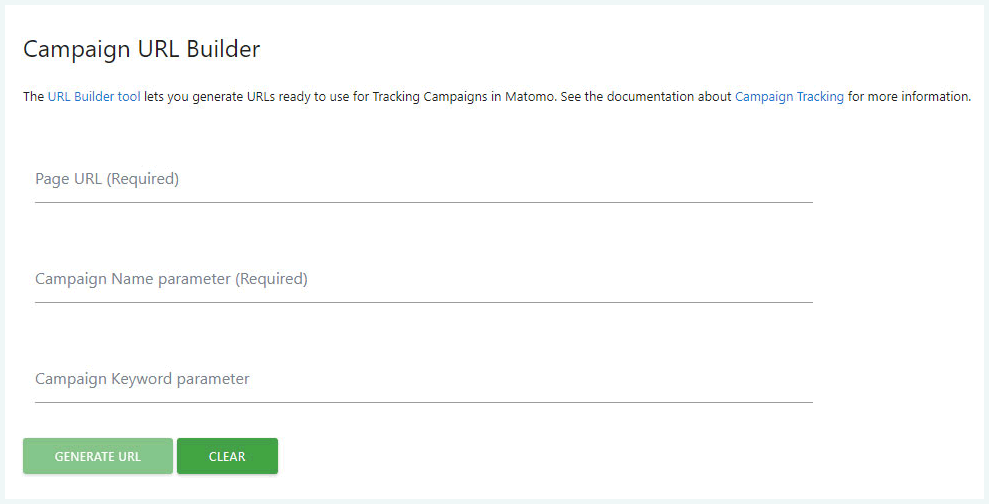 Vous pouvez générer vos propres URL avec le Bâtisseur d’URL de campagne de Matomo pour capturer les résultats de chaque partie de contenu créée par vous, sous Campagnes.
