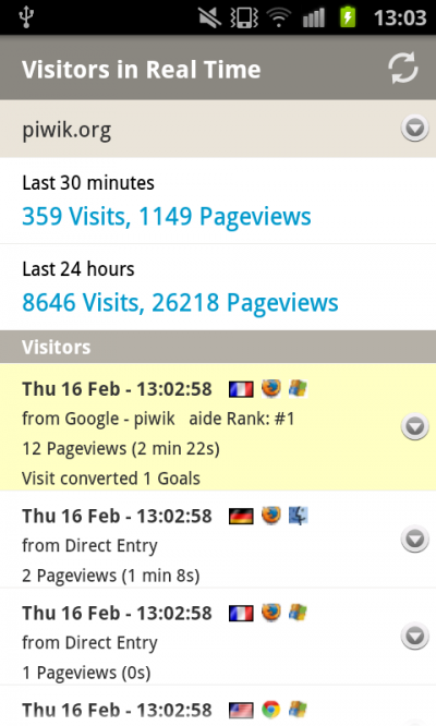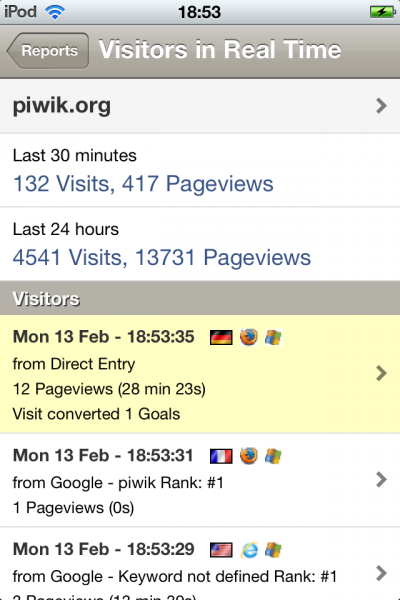 For example you can display pageviews, unique pageviews, average time on site, etc. for any report (similarly to the Matomo (Piwik) software) - Visitors who have achieved a goal are highlighted in Visitor Log and Live!