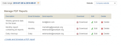 All logged in users can create custom PDF reports, for each website, by clicking on the PDF link in the top menu.