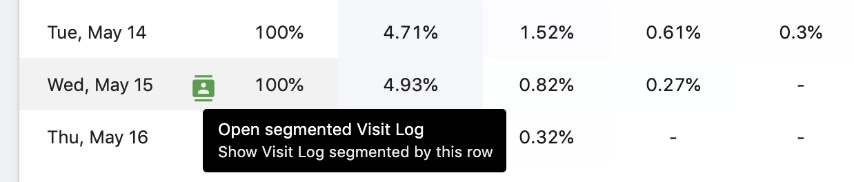 Click it to launch the Segmented Visitor Log. At the bottom of the popup there will be a button with the segment selector icon: