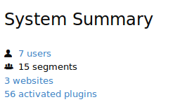 - In Matomo On-Premise, the number of users is shown in the widget System Summary in the top left of the administration home page.