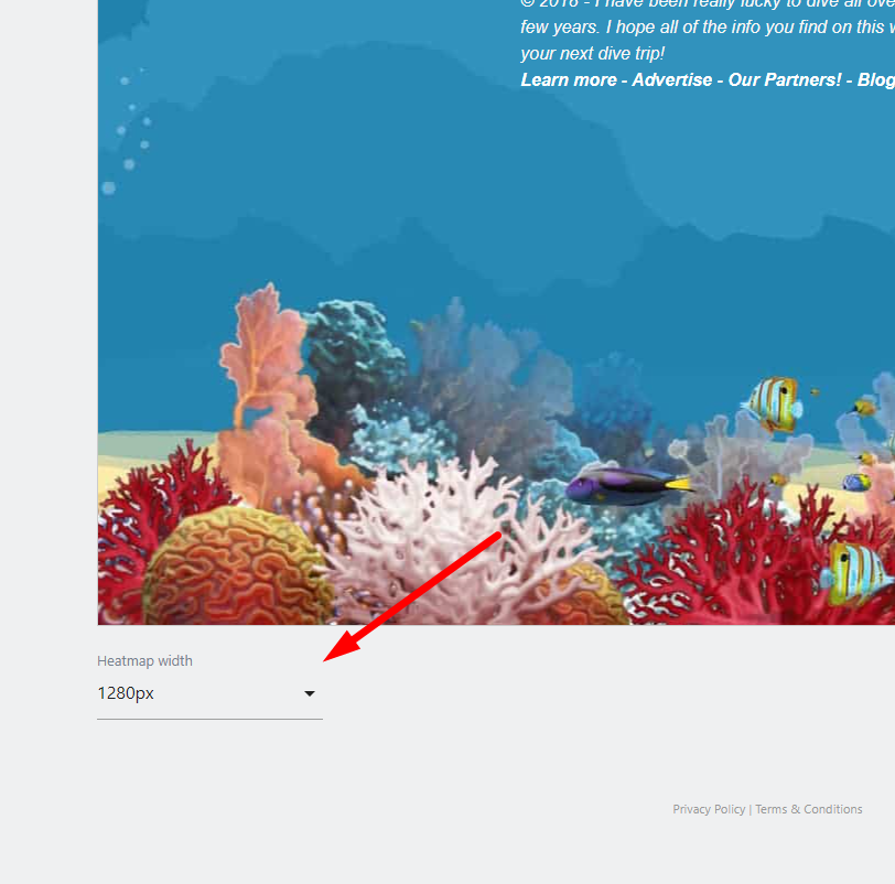 To view heatmaps at a different resolution, simply scroll to the bottom of the heatmap and select the desired resolution from the dropdown as shown in the image below. The recorded heatmap will then be rendered accordingly.