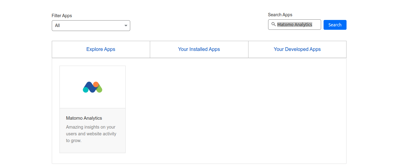 Recherchez « Matomo Analytics » dans la boîte de saisie « Applis de recherche ».