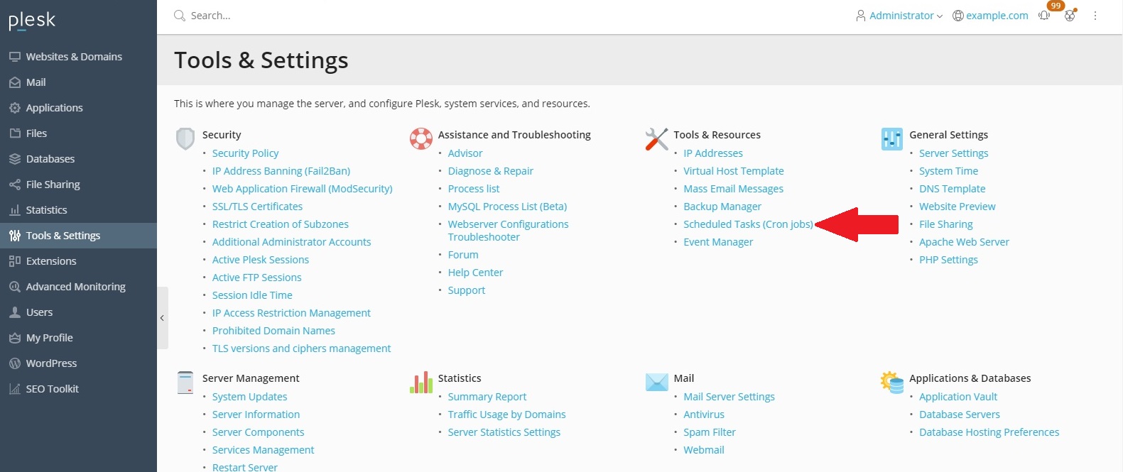 - Select Scheduled task (Cron jobs) from the Tools and Resources menu.