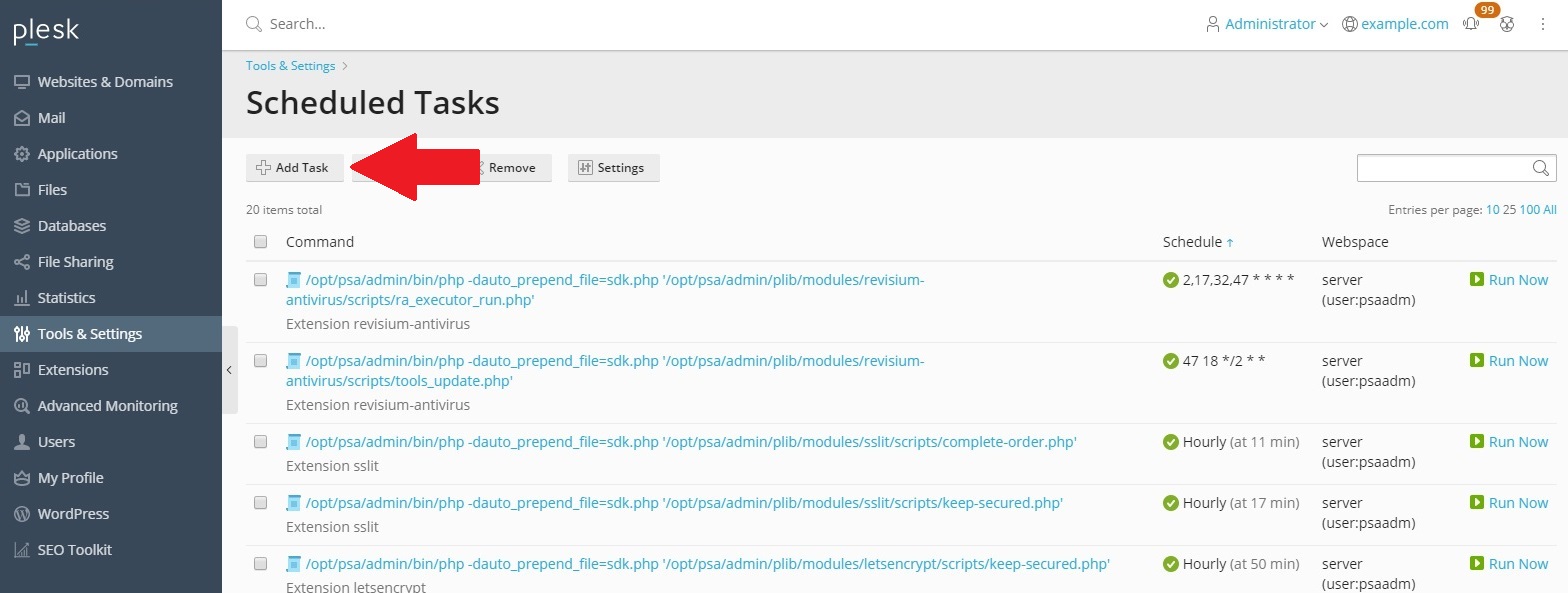 The path typically for Plesk will be/var/www/vhosts/domain. If you are on shared hosting, please check with your hosting company. The path to the cron-matomo-archive.log file can be to a folder of your choice (for example in/var/www/) - Set the frequency to « Run Hourly » as we want the cron to run every hour.