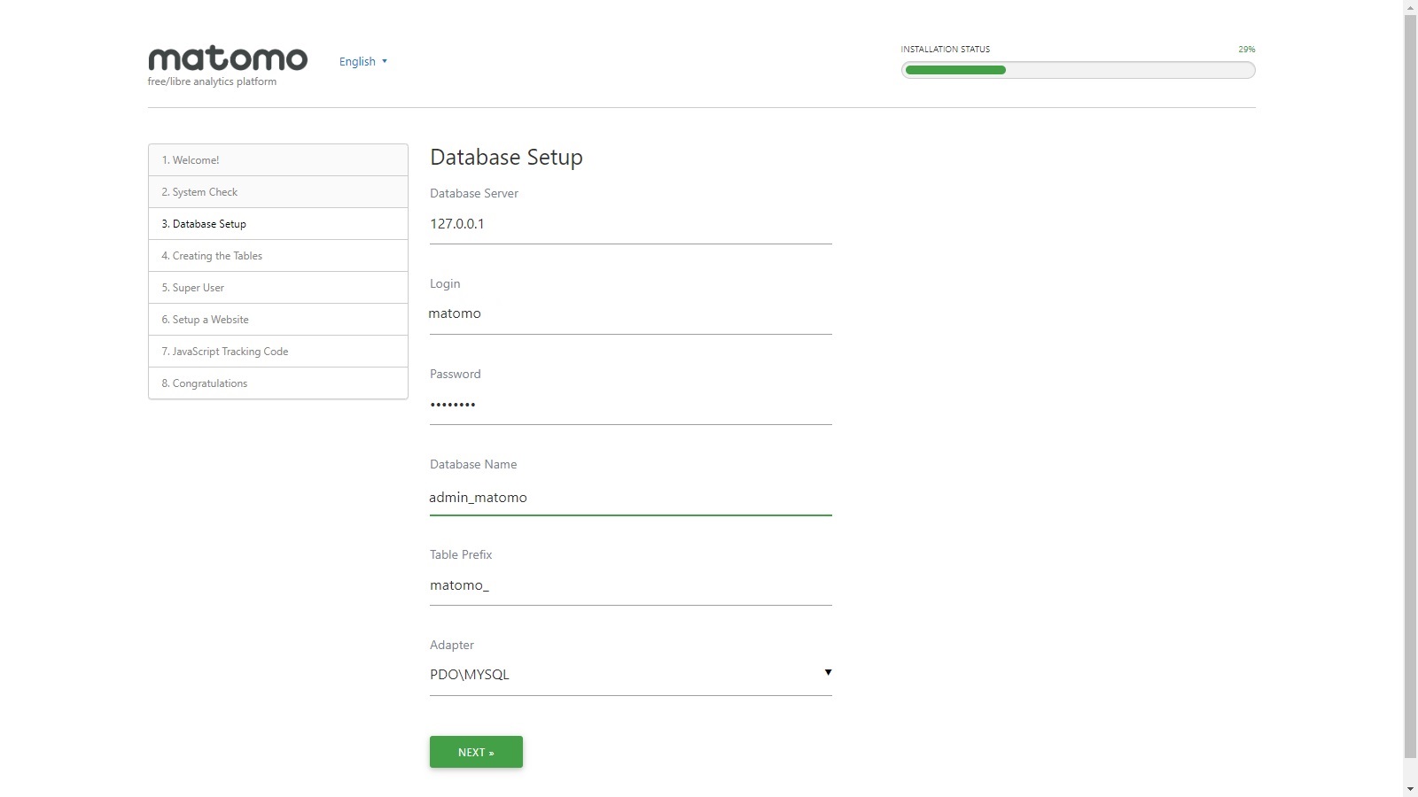 If you already have a website configured you may want to create a subdomain for Matomo to be installed into (e.g matomo.example.com), alternatively you can create a folder called for example “matomo” and reference this folder for your installation (e.g example.com/matomo). This guide explains how to install Matomo using both methods.