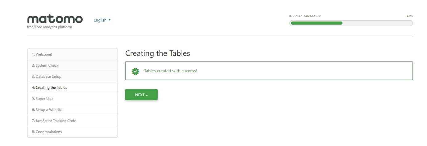 The next step is to include the Matomo Tracking Code in your websites to start tracking your website and app users.