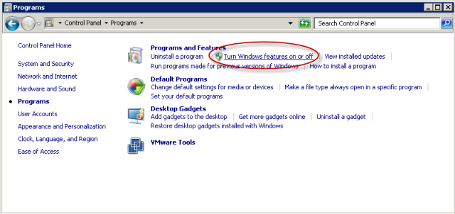 In the Programs section, select Turn Windows Features on or off.