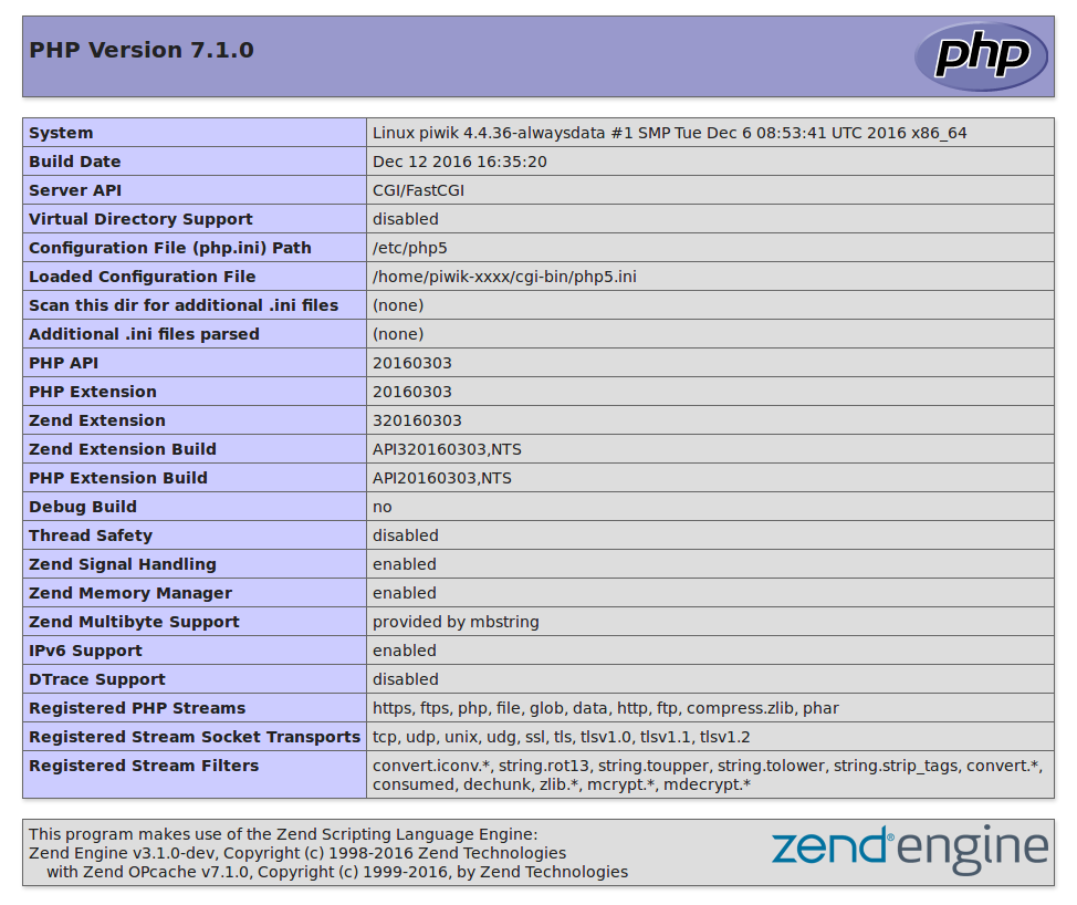 phpinfo();