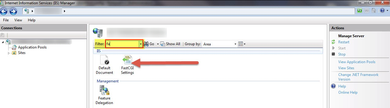 Use the filter to search for FastCGI Settings