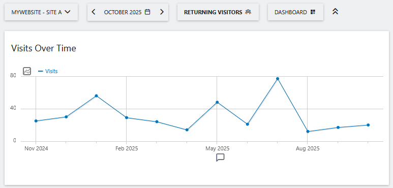 Clicking on a segment name will update the view. For example, by selecting Returning Visitors in the tab, the graph shows only data for Returning Visitors.