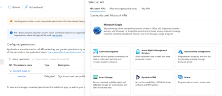 Go to Manage > API permissions in the left menu and click Add a permission.