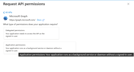 Click Microsoft Graph and then Application permissions.