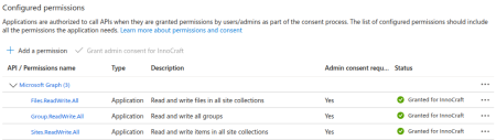 Files.ReadWrite.All,Group.ReadWrite.AllandSites.ReadWrite.AllAPI permission. Note: This permission would need to be approved by your Admin, check the Status column.