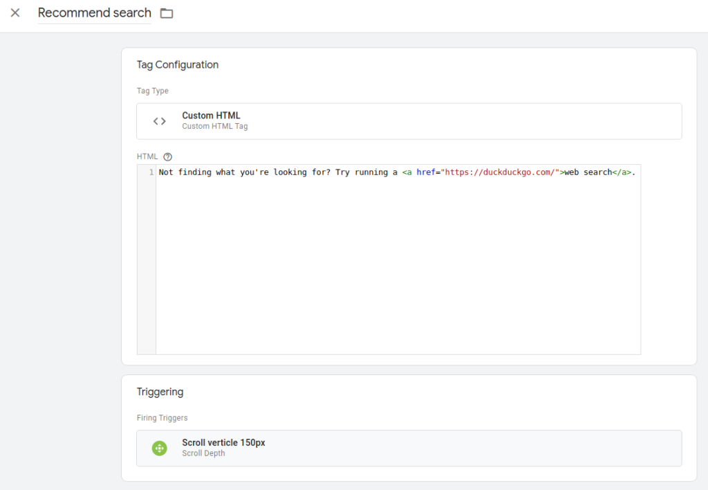Say you have a GTM variable using the previously mentioned trigger to display some text like this: