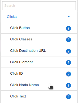 You can then either expand the Clicks type group or search for ‘Click n’ and select the Click Node Name option: