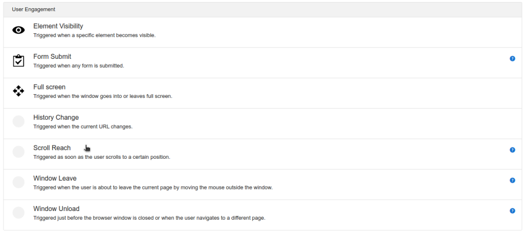 - Your trigger will then be available to use in the creation of a new tag.