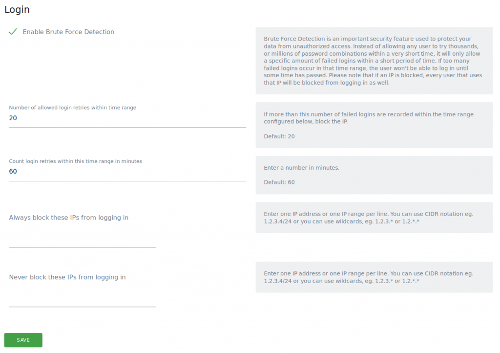 3. Click Save. This will disable the brute force detector feature, and the error message should be cleared.
