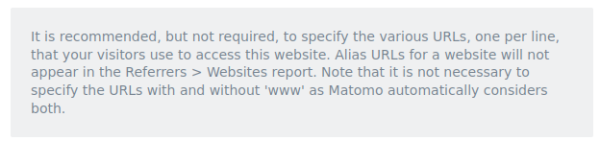 Likewise, if example2.com has example1.com set as a URL for itself, then any links clicked on from example1.com to example2.com won’t be counted as a referrer. For example if your settings for example2.com were as follows: