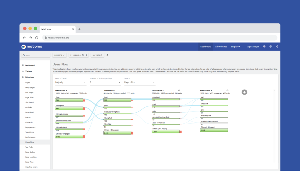 The Cloud version resides on Matomo’s servers in Germany, with Matomo’s core team handling all maintenance and updates.